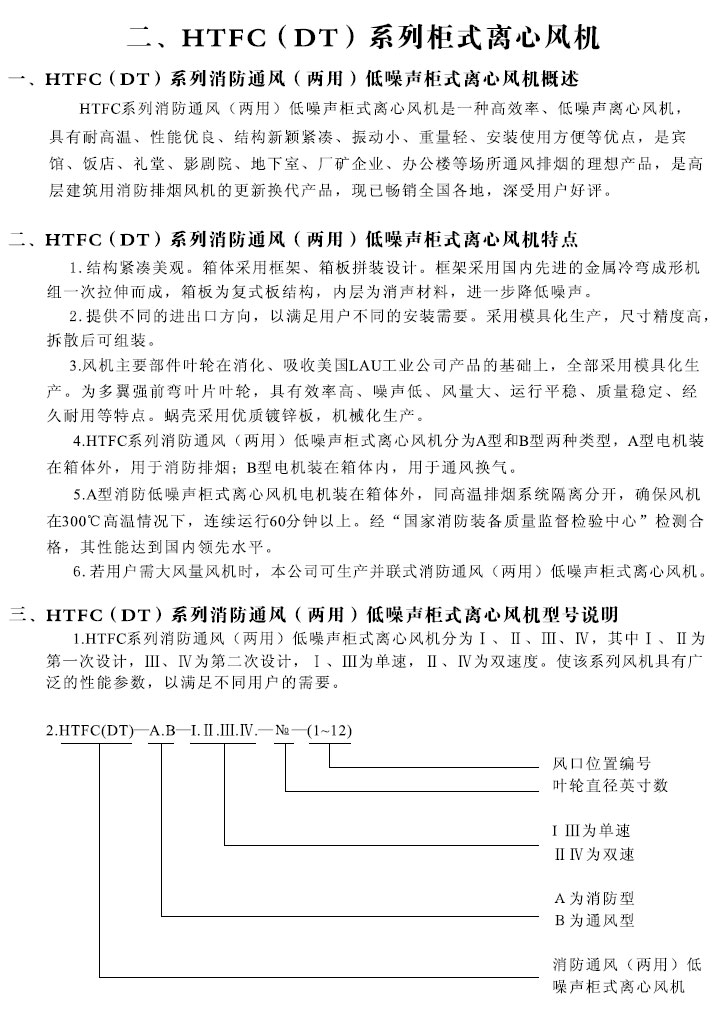 HTFC(DT)-I、II、III、IV系列消防通風(fēng)(兩用)柜式離心風(fēng)機(jī)