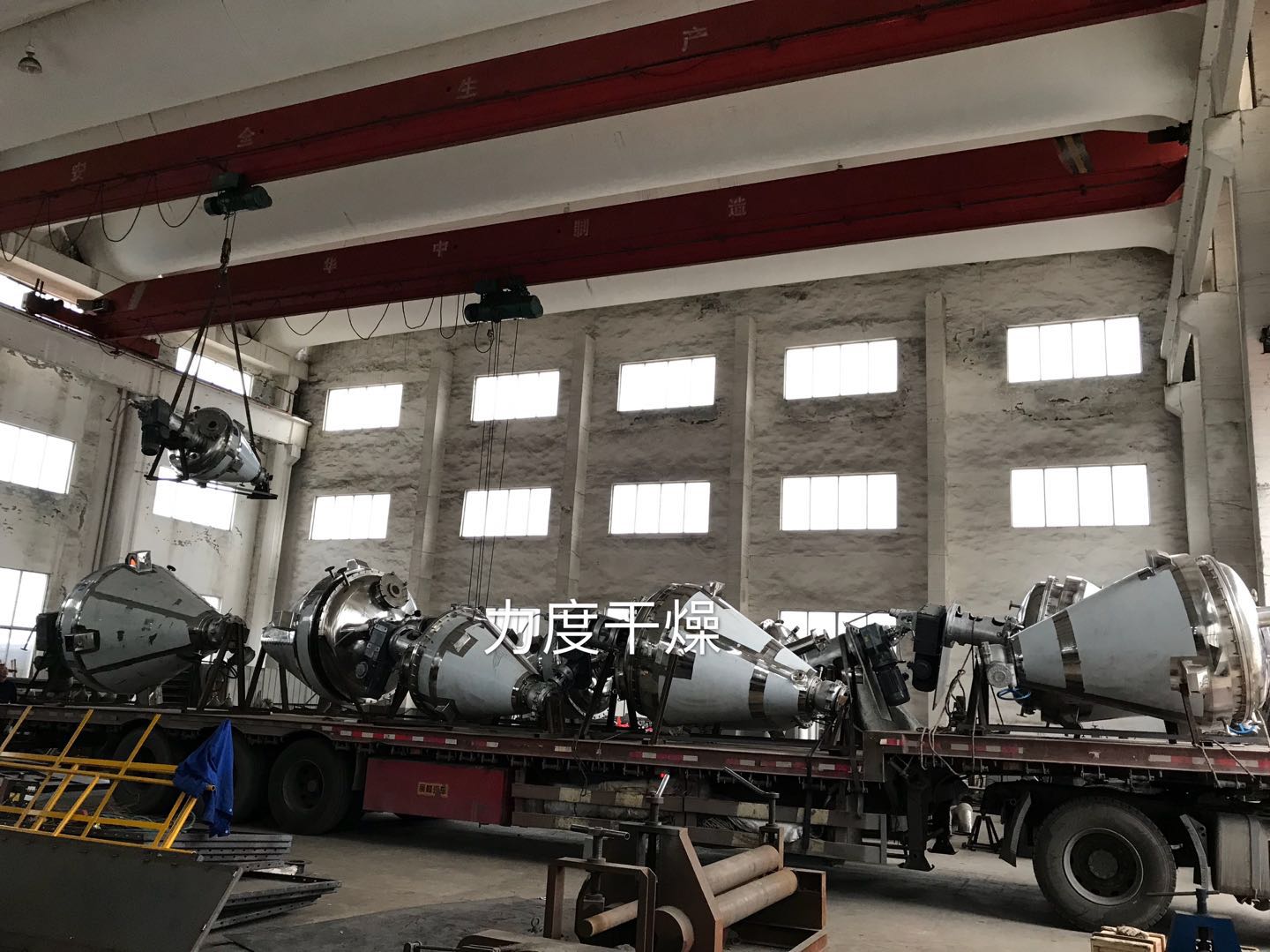 我公司根據不同的物料設計不同的螺帶攪拌結構,通過實驗法與電腦軟件模擬物料在筒體里面運動方向設計螺帶的寬度與不同的螺距,^大發揮出螺帶的翻料效果,它主要適用于制藥,化工,食品,新能源等行業!以下是發往江西某著名制藥集團的設備裝車現場!