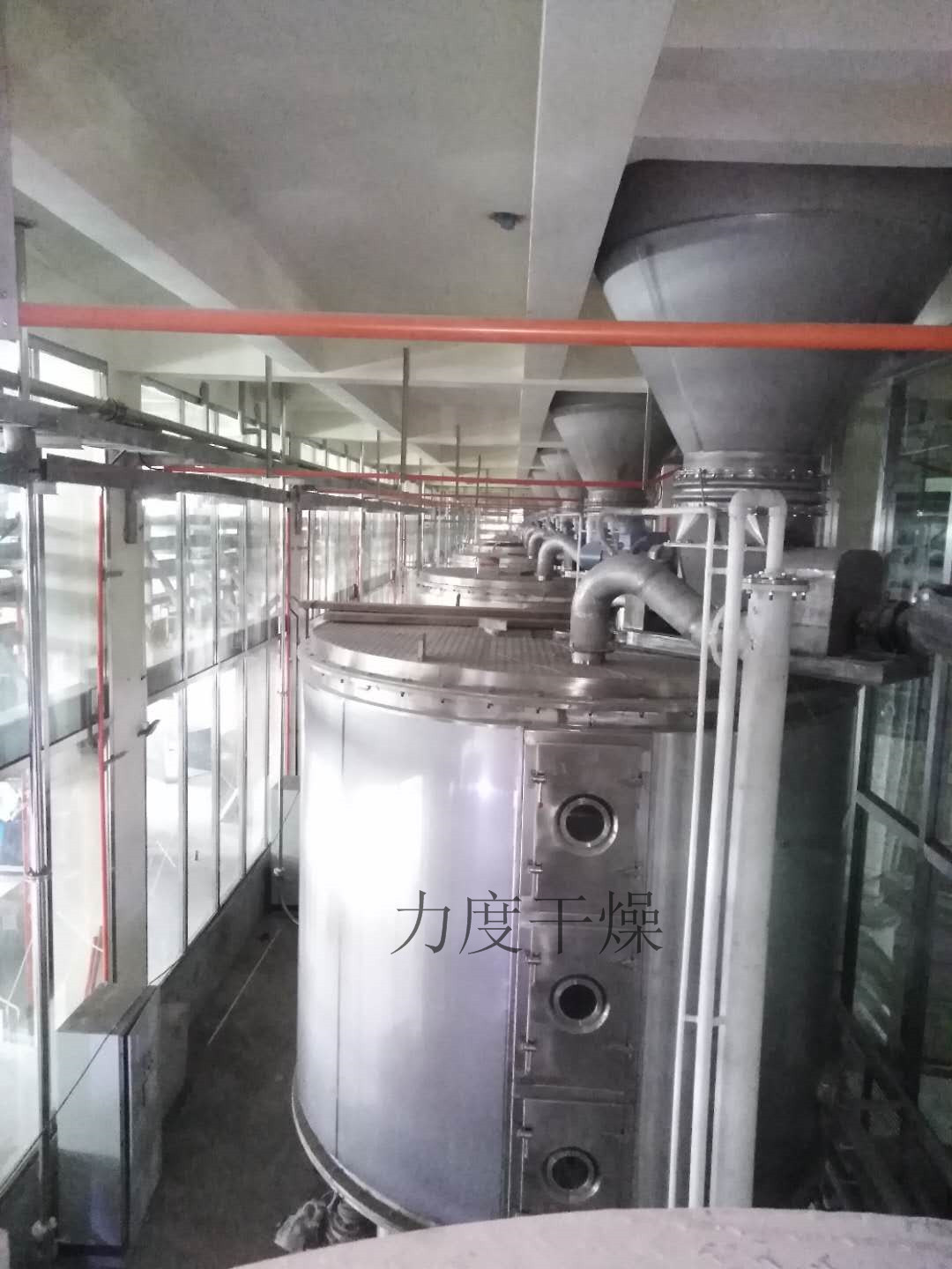 在動態情況下處理:原料經輸送泵送至干燥主機干燥主體內,同時加熱介質通過管道泵輸送至干燥機的加熱夾層內,原料通過干燥機器壁獲取熱量而被加熱,在真空系統的作用下逐漸被帶走水分而達到干燥目的;在原料接近干燥階段,為防止部分粉末被真空泵抽出,設計采用特制袋濾器收集;原料所含的有機溶劑通過特殊冷凝器二級冷凝,使整體回收率達95%以上。