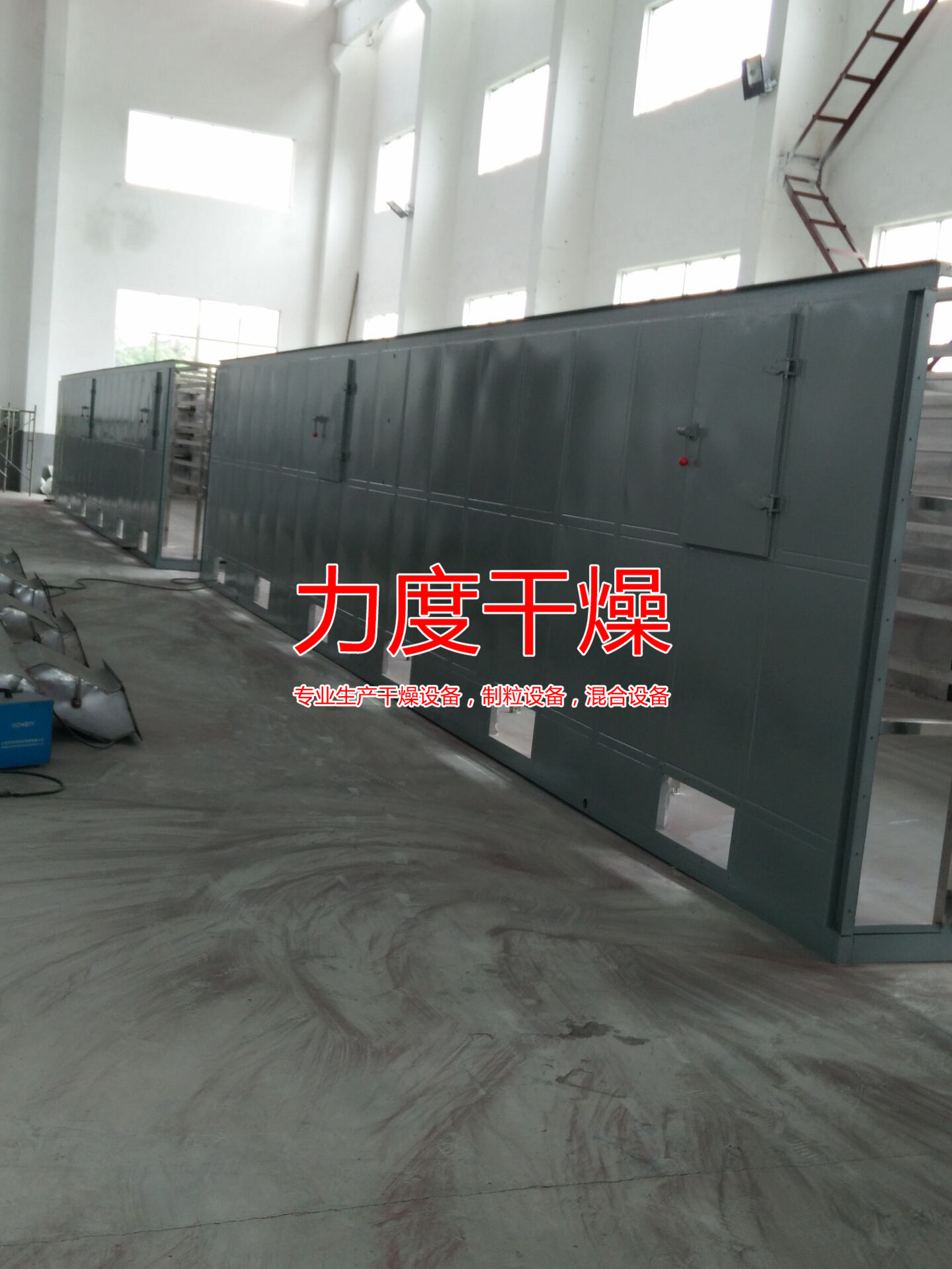 物料通過定制的自動擺料器均勻地鋪在網(wǎng)帶上,網(wǎng)帶一般采用12-60目不銹鋼絲網(wǎng),由傳動裝置拖動在干燥機內(nèi)移動。干燥機由若干單元組成,每一單元熱風獨立循環(huán),部分尾氣由專門排濕風機排出,廢氣由調(diào)節(jié)閥控制,熱氣由下往上或由上往下穿過鋪滿物料的網(wǎng)帶完成熱量與質(zhì)量傳遞的進程,帶走物料水份。網(wǎng)帶緩慢移動,運行速度可根據(jù)物料溫度自由調(diào)節(jié),干燥后的成品連續(xù)落入收料器中。上下循環(huán)單元根據(jù)用戶需要可靈活配備,單元數(shù)量亦可根據(jù)需要選取。
